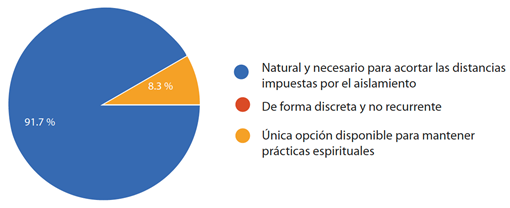 El primer punto que se abordó se refirió a la búsqueda de integrantes para mantener sus prácticas espirituales durante el período de aislamiento social, como se muestra en el gráfico 2: