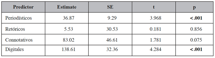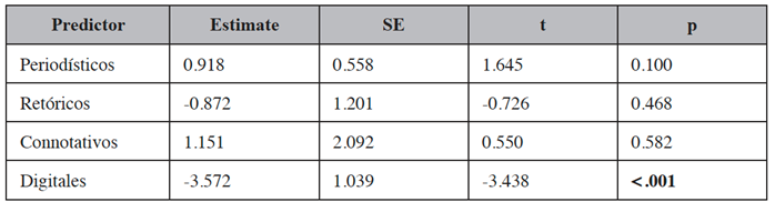 También se puede añadir que, según las tablas 7 y 8, el uso de las marcas digitales tiene una incidencia significativa en la seminalidad en ambas plataformas.