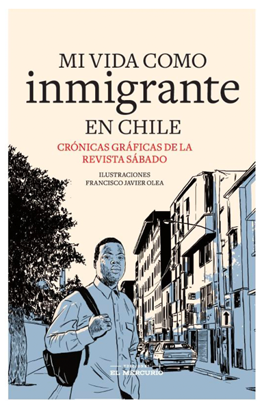 El libro de crónicas gráficas “Mi vida como inmigrante en Chile” está formado por 12 crónicas de cuatro páginas de viñetas, publicadas por el periódico El Mercurio de Santiago a través de su Revista Sábado. Las crónicas aparecieron quincenalmente desde noviembre de 2017 y a lo largo del 2018. En paralelo, se difundieron fragmentos de las crónicas por la cuenta de Twitter de la Revista Sábado y a fines del 2018 se compilaron en el formato libro para conmemorar los veinte años de la Revista. Se observa la estrategia de combinación de medios en el que cada uno aporta con su propia materialidad y dan lugar a un nuevo producto resultado de una integración de los distintos medios de la empresa periodística.