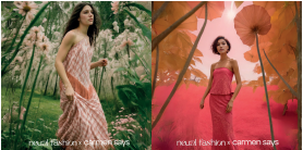 Nota. Linkedin.com/company/neural-fashion-aiEn esta colaboración se demuestra que la integración de la IA permite representar de manera más efectiva la esencia de una marca como Carmen Says. Esta intención se refleja también en la estética de las imágenes, donde la representación de entornos fantásticos y naturales subraya su preocupación por el medioambiente a la vez que comunica sus valores e intención de hacer de sus colecciones un cuento.