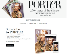 Se comenzó con la publicación de un desplegable semanal que presentaba los productos a la venta en la web. A principios de 2013, este desplegable se convirtió en una revista digital gratuita, The Edit. Sorprendentemente, y en un contexto de cuestionamiento de publicaciones de papel (Siles y Boczkowski, 2012), un año después, se lanzó la revista impresa Porter (imagen 2). Porter entraba en competencia directa con cabeceras como Vogue, Harper’s Bazaar y Elle, aunque lo hacía con una periodicidad bimestral, y un precio de 9,99 dólares, muy superior al de sus rivales, que estaban en los quioscos por una media de 5,5 dólares.
