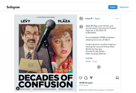 En el cortometraje analizado, la parodia de un concurso de deletreo de palabras (spelling) es sin duda un guiño vintage a la cultura popular americana. El corto está escrito por el actor Dan Levy (Good Grief, Schitt’s Creek) que lo protagoniza junto a Aubrey Plaza (Safety not Guaranteed, Parks and recreations). Ambos actores son cómicos ampliamente conocidos por su participación en series de actualidad y están alineados con los valores que la marca representa. La elección de este tipo de embajadores supone otro cambio significativo, tanto en este corto como en otros contenidos Loewe cuenta como protagonistas de sus campañas con cómicos, raperos, youtubers, músicos y celebridades que le permiten conectar mejor con el público joven, muy alejados del patrón de embajadores tradicionales usados hasta hace muy poco por la marca (Sanz et al., 2020). La dirección creativa del corto es del propio Jonathan Anderson que también es mencionado en clave humorística en una de las escenas. En “Decades of Confusion”, además del fashion film, la campaña se extiende con una colaboración fotográfica con Hedi Stanton que ilustra el backstage de la realización del corto y con otra alianza con el ilustrador Ignasi Monreal que realizó un poster. Esta campaña sirve para difundir el cortometraje en redes sociales, como se puede ver en la imagen 3, donde también se puede apreciar el cambio de estética y tono narrativo.