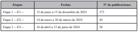 Fechas y número de publicaciones durante las tres etapas