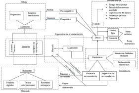 El segundo elemento importante sobre esta falsa economía colaborativa descansa en la reducción de tiempo de ocupación, lo cual en realidad es producto de la aceleración del ciclo de acumulación de la renta; al reducir el tiempo de estancia, el precio no solo aumenta, sino que el ciclo de acumulación se acelera, obteniendo una ganancia similar o superior a la que obtendría cualquier arrendador bajo esquemas ‘clásicos’ y temporalmente prolongados (Olmedo-Neri, 2020). Esta aceleración y el costo económico que implica se vuelve al mismo tiempo en un mecanismo que incentiva la exclusión y desplazamiento de quienes no pueden competir con las nuevas exigencias del mercado inmobiliario urbano (Robert, 2021). La figura 1 esquematiza la lógica operativa de Airbnb mencionada hasta el momento.