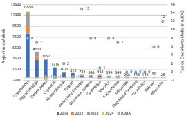 Nota. Elaboración propia a partir datos de Airbnb Inside (2024).Como se observa, Airbnb se comporta de manera diferente según la alcaldía, evidenciando su arbitrariedad en cuanto a su planificación y expansión territorial. Respecto a la TCMA, su comportamiento es heterogéneo, mostrando alcaldías que están llegando a un punto de saturación que les ha obligado a decrecer, mientras que otras han tenido un crecimiento mayor que en aquellas alcaldías donde tienen una pronunciada presencia.