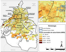 The findings show that the distribution of the 26,582 active accommodations is arbitrary, as 26.44 % of these lodgings are concentrated in seven neighborhoods, which have mobility services and low urban marginalization. Thus, these results allow us to suggest that such platforms exploit the right to the city in favor of new residents and at the expense of permanent residents, meaning that public policies are needed to regulate and promote social justice.