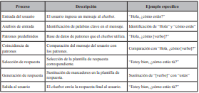 Mientras que, Liu y Lan (2016) afirman que, cuando el usuario introduce una consulta, ALICE busca en su base de datos de plantillas una coincidencia y genera una respuesta basada en la plantilla correspondiente. Este proceso permite que ALICE maneje una amplia variedad de interacciones de manera rápida y eficiente, aunque sigue estando limitado por la necesidad de plantillas predefinidas y la falta de comprensión profunda del contexto o la intención del usuario.