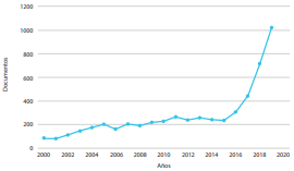 Nota. Tomado de Caldarini et al. (2022): Resultados de búsqueda de Scopus, desde 1970 hasta 2021, para las palabras clave “chatbot” o “agentes conversacionales” o “sistema de conversación”.Discusión