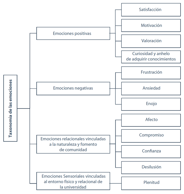 Emociones relacionales: se vinculan con las interacciones humanas en el contexto universitario, naturaleza y fomento de comunidad.