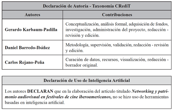 Karbaum-Padilla, G., Barredo-Ibáñez, D. y Rejano-Peña, C. (2025). Networking y patrimonio audiovisual en festivales de cine iberoamericanos. Universitas XX1, 44, pp. 151-175. https://doi.org/10.17163/uni.n44.2026.06