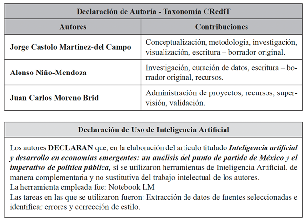 Martínez-Del Campo, J. C., Niño-Mendoza, A. y Moreno-Brid, J. C. (2026). Inteligencia artificial y desarrollo en economías emergentes: un análisis del punto de partida de México y el imperativo de política pública Universitas XX1, 44, pp. 233-259. https://doi.org/10.17163/uni.n44.2026.09.