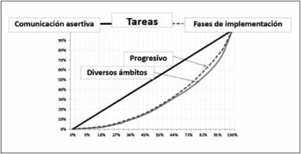 Como se ve en la figura 2, los desempeños de paz durante la reconstrucción de Kosovo tienen altos porcentajes de avance progresivo en diversas áreas, ambos relacionados con la implementación de la comunicación asertiva como herramienta transversal.