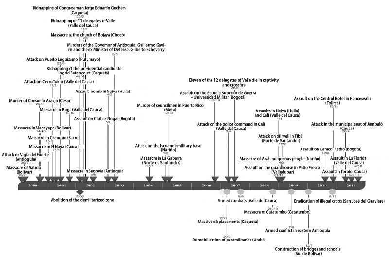 However, for 2000, the national territory witnessed the events that occurred every day in the "demilitarized zone," established by President Andrés Pastrana (19982002) (Figures 1 and 2),