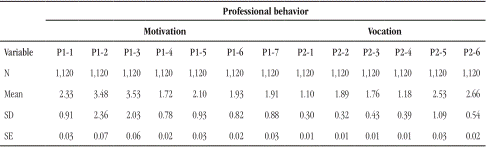 In this area we sought to gather information regarding the conduct of respondents as a future Officer of the National Army of Colombia, aiming to establish the rationale behind their stimulus to serve. This area was divided into two sub-areas: 1) Motivation (P1); and 2) Vocation (P2). It consisted of 13 questions, including questions such as “Before joining the ESMIC, how often were military issues discussed in your family? (P1-1)”; and “What makes you trust more in a member of your military unit? (P2-5)” (Table 4).