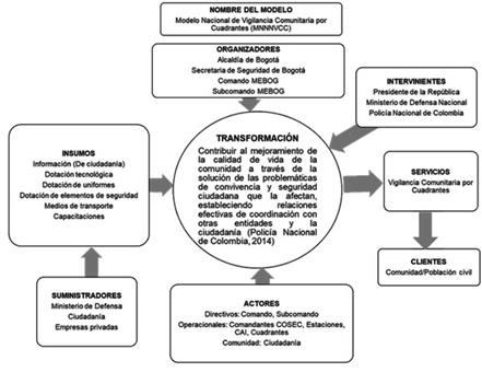 La Policía Nacional de Colombia centra su operación en la búsqueda de la convivencia y la seguridad ciudadana (Policía Nacional de Colombia, 2010). En consecuencia, ha implementado el Modelo Nacional de Vigilancia Comunitaria por Cuadrantes (MNVCC), que se ha definido como una estrategia para identificar y solucionar las problemáticas generadas por la criminalidad y violencia que afectan la convivencia y seguridad ciudadana en zonas rurales y urbanas (Policía Nacional de Colombia, 2014). Este modelo ha sido aplicado en las ciudades de Colombia, entre ellas su capital, Bogotá D.C., en el marco de la Política Nacional de Vigilancia Comunitaria y Seguridad Ciudadana, y ha generado efectos positivos frente a la previsión y atención del delito; sin duda, ha significado un aumento en la seguridad ciudadana (Tamayo & Norza, 2018).