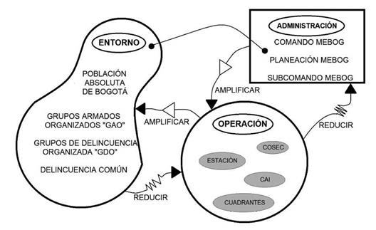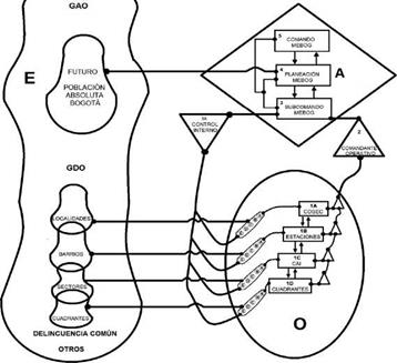 ABSTRACT: This article evaluates the performance of the National Model of Community Surveillance by Quadrants in the city of Bogotá. This strategy of territorial control, implemented by the National Police of Colombia, was evaluated using a systemic approach, employing the viable system model and self-transformation methodology. Unstructured interviews with retired police officers and consultation of secondary sources were used to determine the following: identity, levels of the recursive organization, structural strategy, and diagnosis. The results show that this model promotes an inclusive and flexible policing service, with a specific structure of primary processes, roles, mechanisms, and levels. It promotes a better understanding of community interactions and, ultimately, better results in the institutional objectives of security and coexistence.