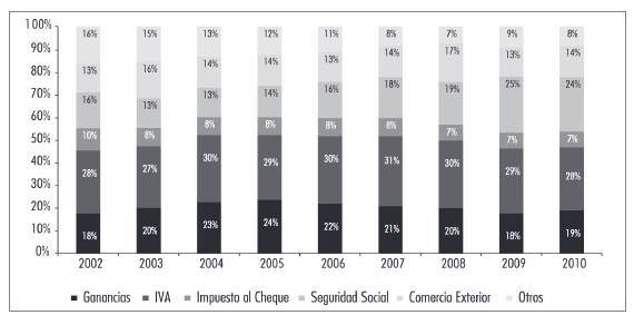 La estructura tributaria argentina se caracteriza por una fuerte presión tributaria, que ha crecido un 74 % entre el 2002 y 2016. En el 2018 llegó al 33 %, superando al promedio de 25,2 % de América Latina y poniendo al país como uno de los que más se acerca al promedio de 34,3 % de presión tributaria en la OCDE ese mismo año. Estudios de Garriga et al. (2018) demuestran que, en el caso argentino, la sobrecarga tributaria supera a la presión fiscal potencial; por esta razón, se concluye que la estructura se mantiene con impuestos fáciles de recaudar (como el IVA), los cuales no siempre disminuyen la pobreza o aumentan la economía.