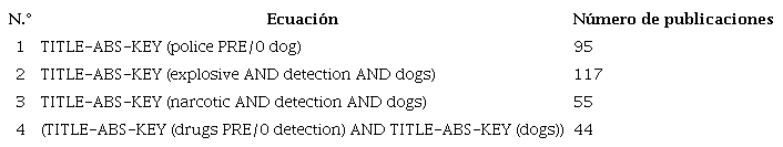 Para el objetivo de este trabajo, fue necesario buscar en la literatura científica de los últimos diez años artículos relacionados con los conceptos clave que se desarrollaron, tales como "perros detectores de narcóticos", "explosivos", "perros policía", "detección de drogas", entre otros términos, en el contexto del resguardo de la seguridad y la defensa nacional. En consecuencia, a fin de cumplir con los parámetros de la RSL, se establecieron las siguientes preguntas orientadoras: