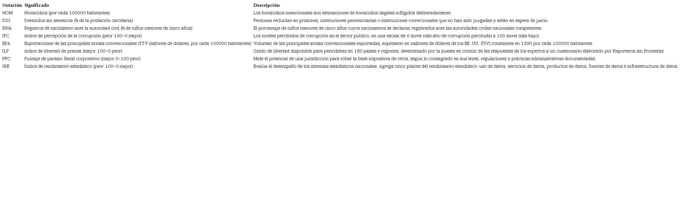 Los análisis permitieron identificar notables diferencias entre países, como, por ejemplo, en el índice de percepción de la corrupción (IPC). Al respecto, Lalama y Bravo (2019) señalan: “Sin duda, es la corrupción uno de los principales riesgos para el cumplimiento de los objetivos que buscan el crecimiento económico y la reducción de la pobreza, pues son recursos que se distraen, acentuando más la inequidad” (p. 16). En este trabajo pudo evidenciarse que la corrupción es el mayor desafío que enfrentan los países que buscan la paz en sus territorios. También se observó cómo, cuando una nación tiene bajo puntaje en el IPC, también evidencia violación a la libertad de expresión, evasión de impuestos tributarios en paraísos fiscales, un alto número de personas privadas de la libertad sin sentencia y un bajo índice de registro estadístico.