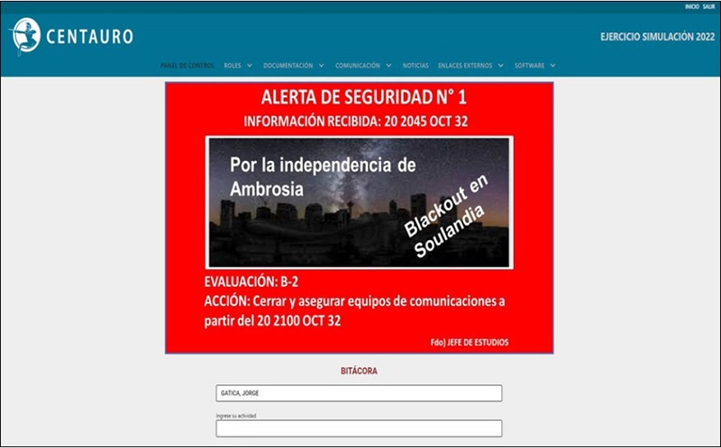 Tal como se mencionó, todas las interacciones del JAC se desarrollaron a través de la plataforma Centauro, mediante la explotación de sus diversas capacidades, principalmente la reproducción de interfaces, que permitieron soportar la ficción del ejercicio, alojando una serie de documentos generados por el ED, tales como: situación general y situaciones específicas; mapas y cartas; actualizaciones de información; requerimientos y tareas, y las respuestas o propuestas de los EE (Figura 2).