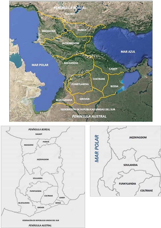El juego se ejecutó en el contexto de una ficción situada en el año 2032, en un país llamado Soulandia. Este país, robusto institucionalmente y pujante en lo económico y social, se encontraba inserto en un complejo geográfico constituido por varios países vecinos y paravecinos, cuyo comportamiento replicaba situaciones de ocurrencia normal dentro de unidades territoriales (Figura 3). Es así como se recrearon variables ajustadas, basadas en interacciones y dinámicas propias del sistema internacional, tales como divergencias históricas, problemas limítrofes, ascenso y declive de Estados, sistemas de alianzas, intereses afines y contrapuestos, injerencias de terceros, acceso a recursos naturales y participación de actores no estatales, entre otros, sin dejar de lado problemas internos de diferente orden.