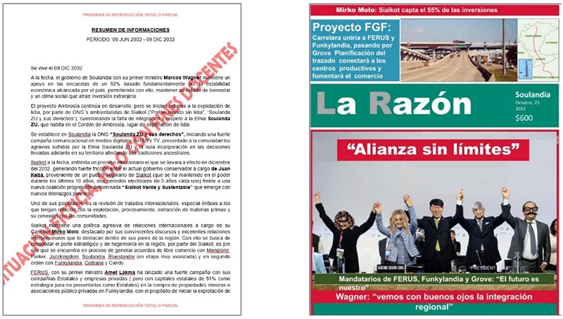 Al término de cada sesión y entre ellas, se entregaron nuevas informaciones utilizando diversos formatos tales como boletines de inteligencia elaborados por diversos organismos o noticias de fuentes abiertas, obtenidos de medios de comunicación social de los países insertos en la ficción (Figura 5).