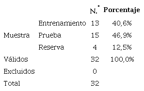 Por otra parte, en la Tabla 7 se observó una alta capacidad de clasificación del modelo propuesto para la partición de las 32 muestras, para su entrenamiento, prueba y reserva, en razón a los departamentos de Colombia y su respectivo porcentaje pronosticado por cada clúster encontrado. Esto probó una capacidad promediada de clasificación para el universo estudiado del 97,7 %, un resultado bueno para el modelo propuesto.