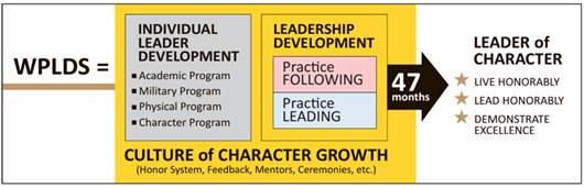 Este programa se compone de tres líneas de esfuerzos (LOE) progresivas y que se refuerzan entre sí. La primera LOE, y la más importante, es el acatamiento del CHC, fundamento del desarrollo del cadete en carácter, con el que se convierte en un oficial. El Sistema de Honor es la principal herramienta en que se basa el CHC; se considera imprescindible para adquirir la autoridad moral necesaria de un oficial. El Sistema de Honor está constituido por normas, procedimientos y autoridades u órganos responsables que sirven para el debido acatamiento al CHC.