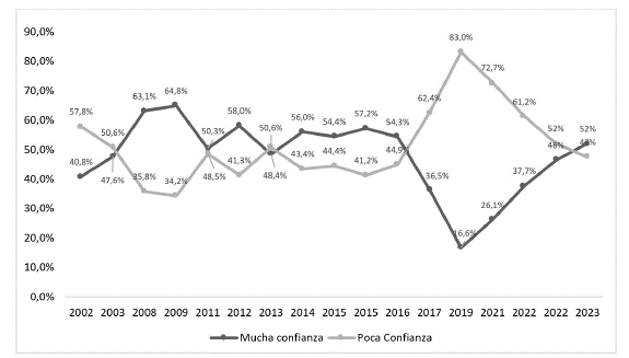 Irarrázaval, I., & Cruz, F. (2023). Confianza Institucional en Chile: un desafío para el Desarollo. Centro de Estudios Políticos. https://tinyurl.com/wnb2a2vb
