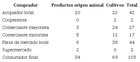 Los hogares solían vender todo o parte de su producto a un conjunto de compradores que incluían intermediarios, mayoristas, minoristas, supermercados, cooperativas de mercados locales y consumidores finales (Cuadro 2).