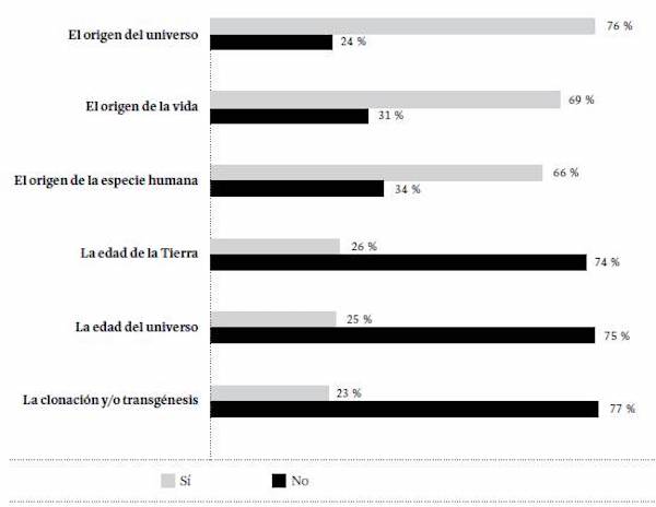 Para profundizar en las tensiones entre explicaciones científicas y creencias religiosas, se presentan, a continuación, las respuestas a algunas preguntas relacionadas con las opiniones que tienen los estudiantes sobre la evolución del universo, el origen y evolución de la vida, y el origen de la especie humana.