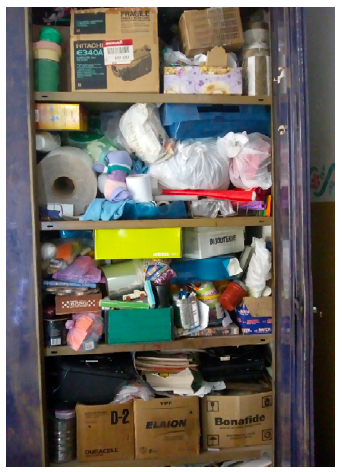 Esta situación, recolectar residuos cartoneados en su propia casa como en la escuela, se perfila en la siguiente fotografía (ver Figura 1) en la que puede verse cómo, desde uno de los armarios del aula, rebrota todo lo que va recolectando por la calle porque, como lo expresa, seguramente algo de eso puede llegar a servir. No sabe a ciencia cierta cuándo lo utilizará, ni de qué modo, pero sí está segura que cuando necesite algún material, su armario va a estar repleto de opciones. Allí se pueden observar distintos estantes con diversidad de recursos: cajas contenedoras de materiales, rollo de nailon, potes de témperas o pegamentos, muchas telas, hilos, guata, algodones, cintas, papeles, entre otros. Al costado, se encuentran los objetos que no entraron, un excedente de cajas con materiales, donados o recolectados, para garantizar más insumos para los proyectos.