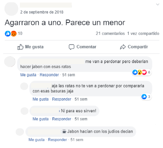 Como podemos observar en esta interacción, si bien los intercambios en torno a los menores que delinquen tienen un menor nivel de virulencia, no siempre es el caso, y las peores propuestas se reeditan. Nuevamente, la noción de sobrante social e infrahumanidad entra en juego para clasificar a estos actores.