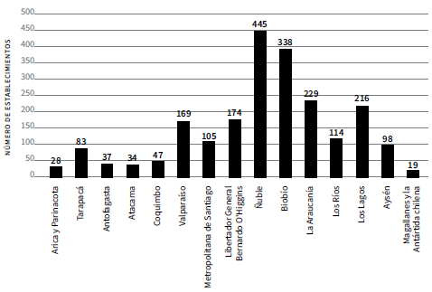 Específicamente en la región de Los Lagos, existen 214 establecimientos educacionales, que van desde educación parvularia hasta liceos, que poseen esta certificación; entre ellos, 123 a están en nivel de excelencia, 50 en nivel medio y 41 en nivel básico (Ministerio del Medio Ambiente, 2022). Puede consultarse el detalle de la situación de los establecimientos certificados en cada región en la Figura 1, según el Sistema Nacional de Certificación Ambiental de Establecimientos Educacionales (SNCAE) del Ministerio del Medio Ambiente (2022).