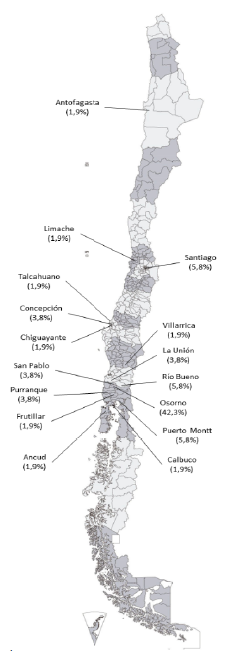 Su procedencia geográfica fue de diversas comunas (distritos) de Chile, como se indica en la Figura 2.