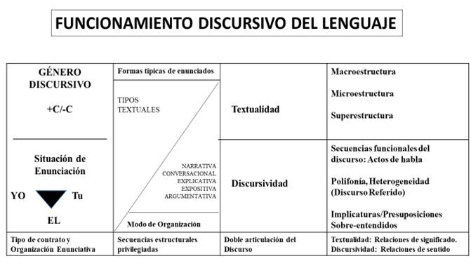 Así, abordar el lenguaje desde una perspectiva social, histórica y cultural es ofrecer a los estudiantes y a los profesores los recursos necesarios para la realización de programas centrados en lo que se ha denominado la «toma de conciencia crítica del lenguaje» (Fairclough, 1995, p. 221), lo que es posible con la comprensión del funcionamiento discursivo del lenguaje, esto es, con el análisis multinivel y multifuncional del texto escrito, tal como lo planteó Martínez (2004, 2013a), en la Figura 1.