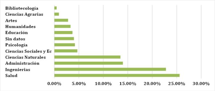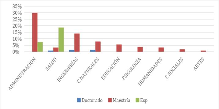 Se identificó solo el nivel de maestría en Educación 6 %, Psicología 4 %, Humanidades 3 %, Ciencias Sociales y Económicas 2 % y Artes Integradas 1 % (ver Figura 2).