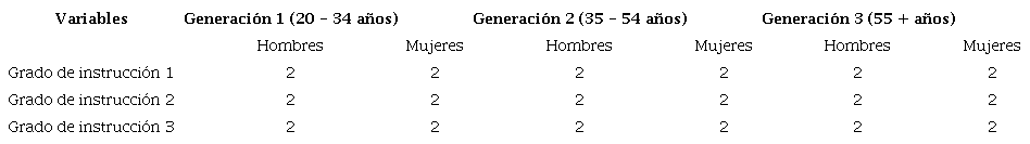 Edad: se distinguen tres generaciones: i) de 20 a 34 años; ii) de 35 a 54 años; iii) de 55 años en adelante.