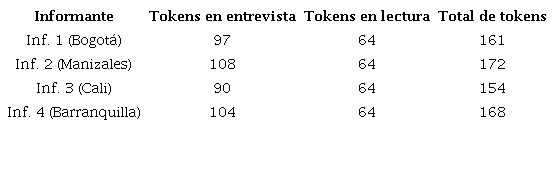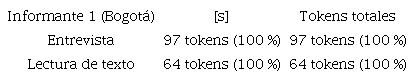 De otro lado, durante la lectura del cuento, se registraron 64 tokens, todos con la variante [s]: