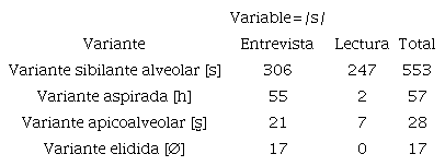 Del registro de la entrevista se analizaron 97 tokens, todos con la variante [s]: