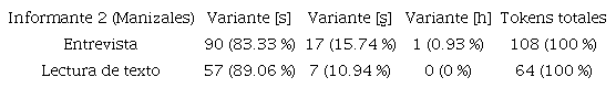 A continuación, se presenta la tabulación de las variantes para la informante de Manizales: