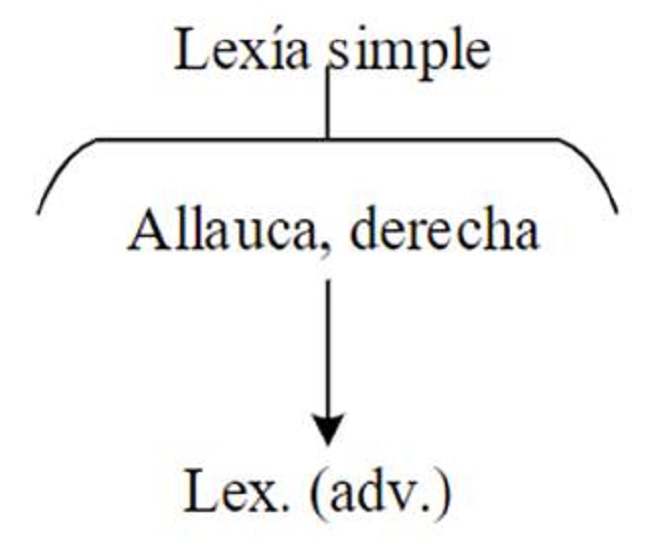 c) Algunos están constituidos por un solo lexema, en este caso cumpliendo función de sustantivo, adjetivo, verbo o adverbio -ver figura 1-. Por ejemplo, con la palabra quechua Allauca de allawqa, «derecha» -adv. -.
