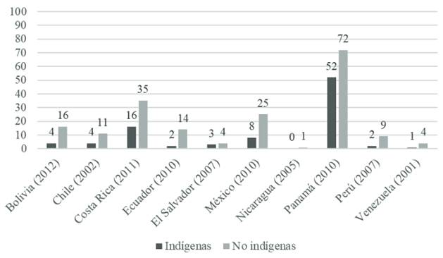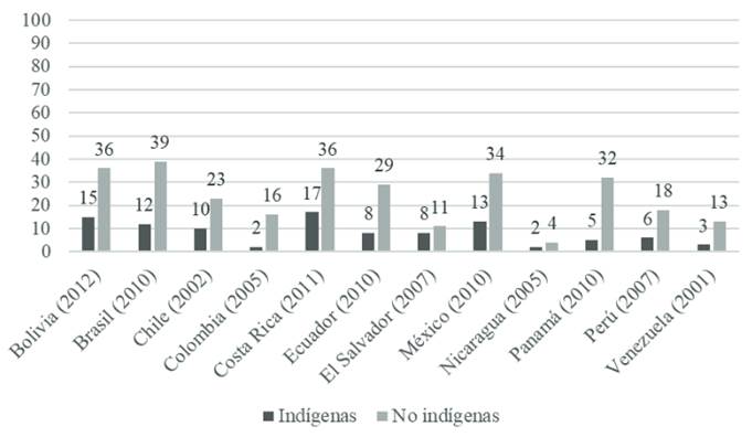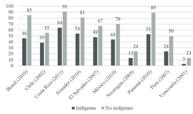 Una pregunta que puede hacerse al respecto es: ¿cuál es la tecnología a la que tienen acceso los pueblos indígenas? Al respecto, el Banco Mundial realizó un estudio comparativo entre varios países latinoamericanos con población indígena -incluido México- con miras a resolver esta cuestión. Se consideraron 3 tipos de tecnologías: (i) computadoras personales, (ii) teléfonos inteligentes y (iii) acceso a puntos de Internet. Estos fueron los resultados reportados: