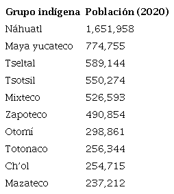 Como se puede observar en la Tabla 1, la agrupación que cuenta con mayor número de hablantes es el náhuatl, con un poco más de un millón y medio de personas; en tanto la siguiente agrupación con más hablantes es la maya yucateca, con cerca de ochocientos mil hablantes. Posteriormente, las siguientes agrupaciones (tseltal, tsotsil, mixteco y zapoteco) se ubican en un rango de medio millón de hablantes, en tanto que los últimos se ubican en un promedio de un cuarto de millón. Aquí cabe hacer algunas observaciones: