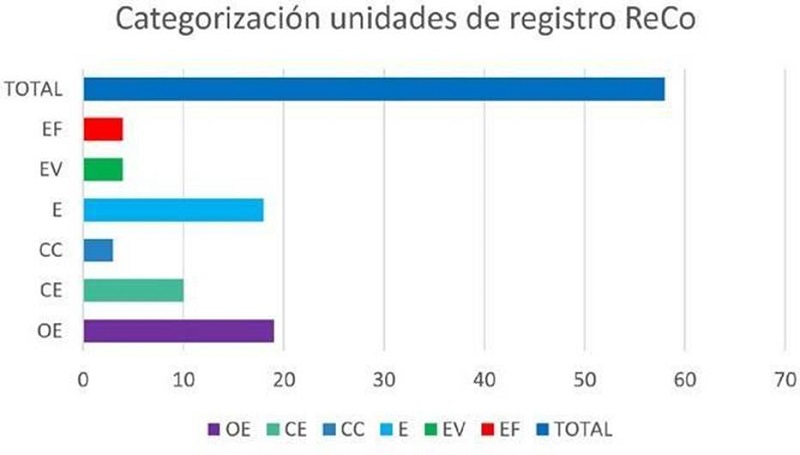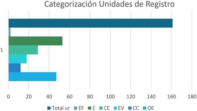 Al realizar el análisis del ReCo se encontraron 58 UR correspondientes a los componentes del modelo de Park y Oliver. El componente con mayor prevalencia corresponde a OE con 19 UR (ver Gráfica 4).