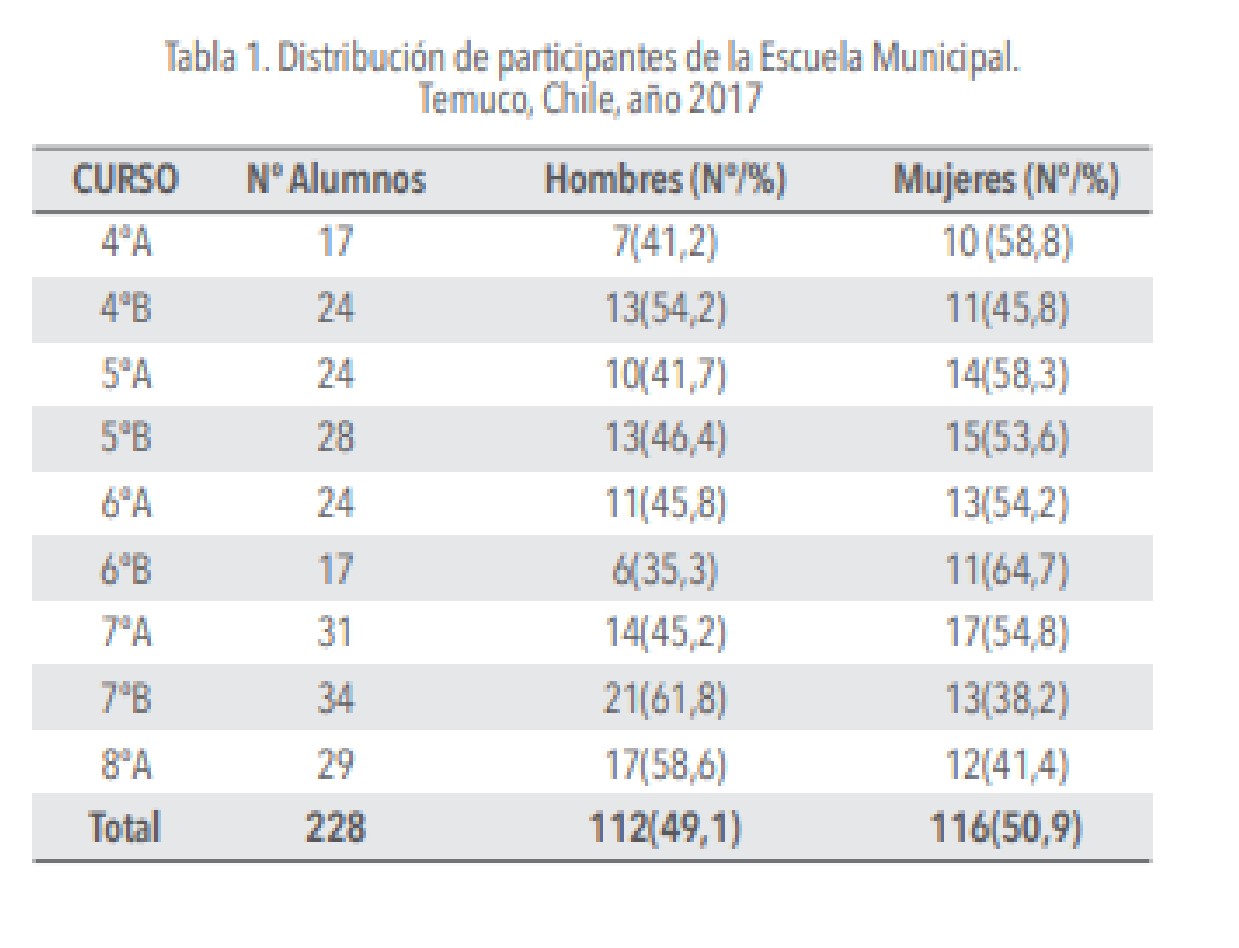 En la Tabla 1 se presenta la distribución de los participantes quienes fueron estudiantes de 4° a 8° básico según se detalla en ella.