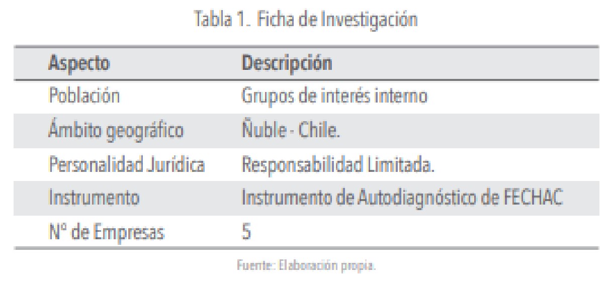 La competitividad es un conductor de valor que desean ostentar todas las compañías, siendo uno de ellos, la capacidad que tiene el negocio en responder a las necesidades y requerimientos de todos los stakeholders; lo cual se conoce como responsabilidad social empresarial (López et al., 2011; Aguilera, Puerto, 2012; Avendaño, 2013; Cho et al., 2015, Yin & Jamali, 2016; Severino-González, 2017), generando para las partes estratégicas beneficios económicos, sociales y medioambientales; conduciendo, a su vez, al aumento de la percepción del bienestar social. El análisis de la responsabilidad social en las organizaciones presenta un notorio desarrollo en la educación (Sepúlveda et al., 2014; Legorreta et al., 2010; Severino-González, et al., 2018; Severino-González y Gaete-Quezada, 2019) y el turismo (Martí et al., 2014; Gaete, 2014; Valarezo y Túnez, 2014); no pudiendo ser señalado lo mismo para la industria de los minerales no metálicos. Es por ello que la relevancia de ésta investigación consiste en la formulación de un conjunto de propuestas de mejoras para las empresas que conforman el sector industrial de minerales no metálicos ubicados en la ribera del río Ñuble (Chile). Para aquello, se realizó un diagnóstico del desempeño social a través de un instrumento de autodiagnóstico propuesto por la Fundación del Empresariado Chihuahuense, A.C. (FECHAC, 2005).