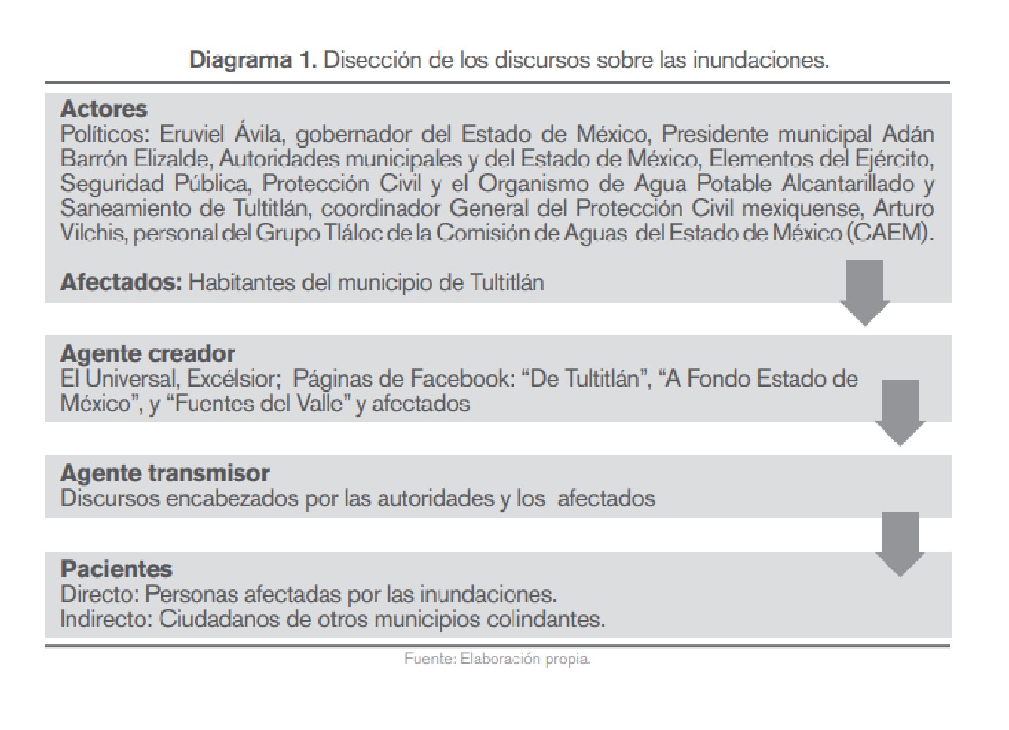 En el Diagrama 1 se presentan los actores mediáticos y no mediáticos que construyen el discurso de las noticias sobre la inundación.