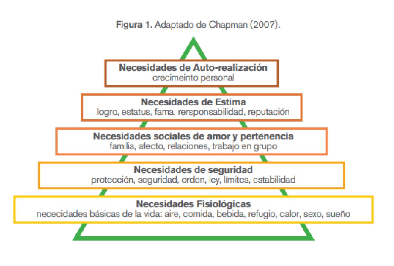 La figura 1, muestra la jerarquía de necesidades propuesta por Maslow representadas en forma de una pirámide.