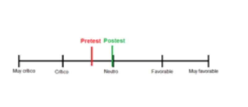 En general los puntajes analizados en el pre y post test muestran una ligera disminución del 2% en la calidad del trabajo cooperativo y relacionamiento de las personas encuestadas y como lo muestra la figura 2 no hay un test que se haya comportado superior al otro.